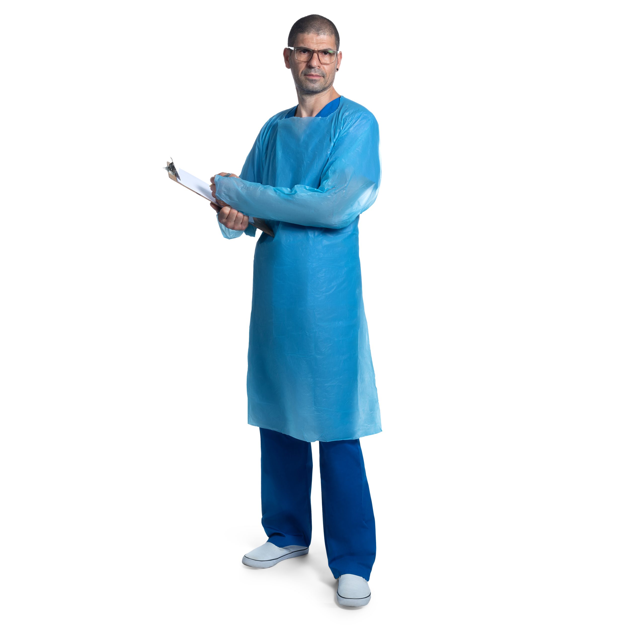 Our Disposable CPE Isolation Gowns is a premium quality protective apparel designed to provide superior protection against fluids, dust, and other particles. Made from high-quality CPE material, these gowns are suitable for medical, dental, industrial, and personal use, making them versatile and reliable.